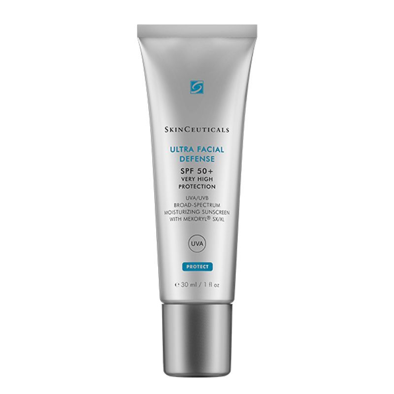 Το αντηλιακό SkinCeuticals Ultra Facial Defense SPF 50 προστατεύει το δέρμα από τη UV ακτινοβολία, η οποία είναι γνωστό ότι επιταχύνει τη γήρανση του δέρματος. Σχεδιασμένο με τα φίλτρα τελευταίας τεχνολογίας UV, αυτό το υψηλής προστασίας αντηλιακό αποτρέπει τη διάσπαση του κολαγόνου από τη UV ακτινοβολία.